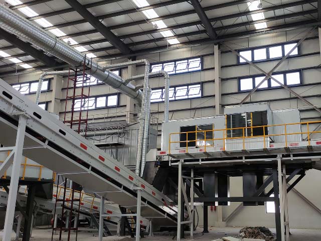 處置系統(tǒng)主要由:金屬鏈板輸送機(jī)、撕碎機(jī)、除鐵器、降塵系統(tǒng)、智能控制系統(tǒng)等組成。